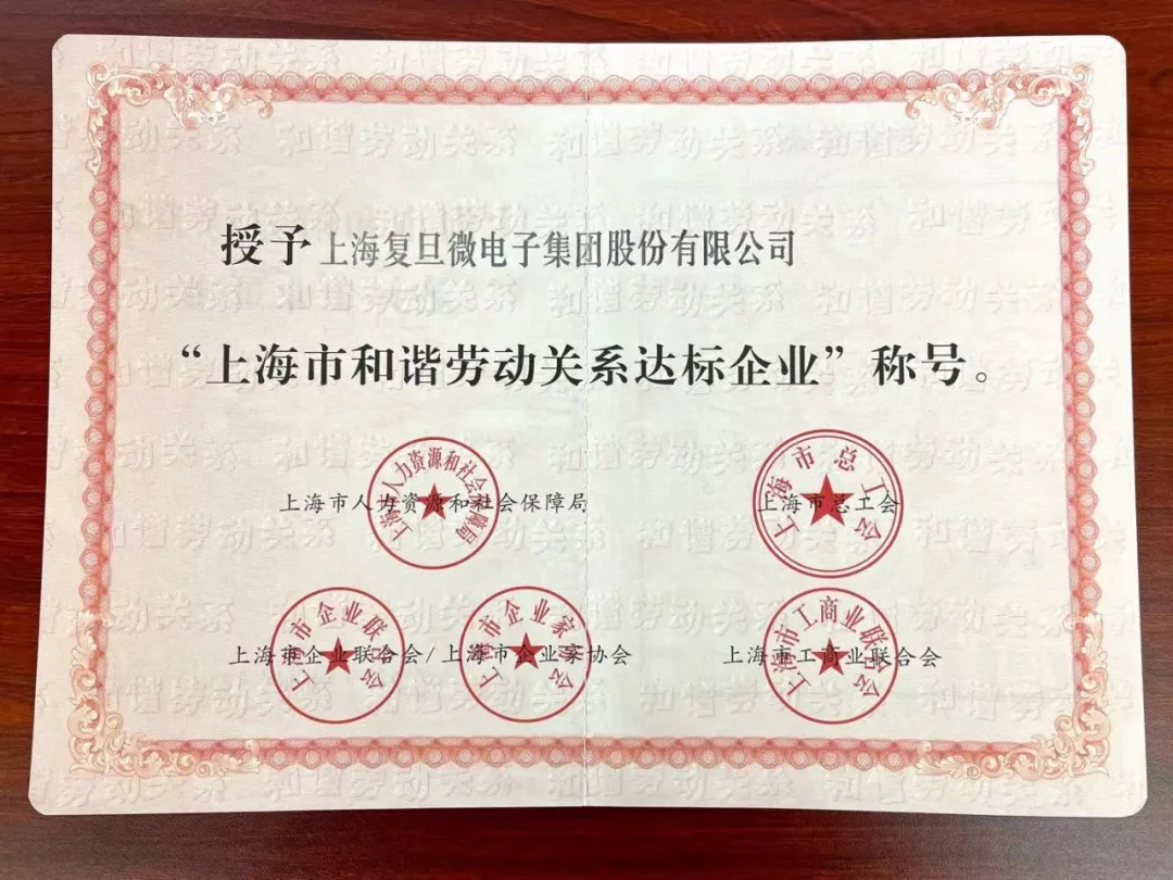 復旦微電獲得“上海市和諧勞動關系達標企業(yè)”榮譽稱號