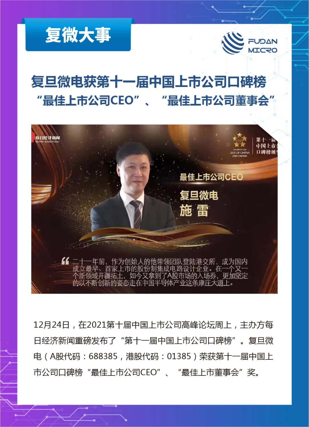 復(fù)旦微電2021年度新聞