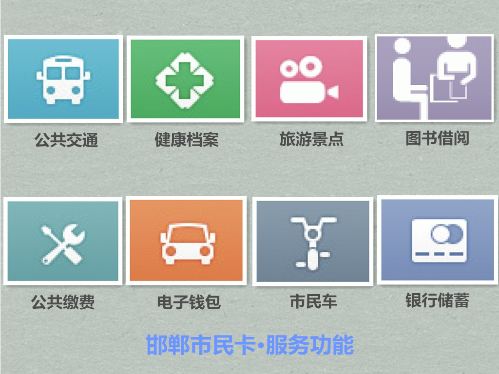 根據(jù)邯鄲市政府規(guī)劃,邯鄲市民卡的應(yīng)用跨公共交通、醫(yī)療就診、旅游、公共事業(yè)繳費(fèi)、公共服務(wù)等多領(lǐng)域,未來將逐步發(fā)展到其他公共服務(wù)(體育館、公園景點(diǎn)等)、便民支付(加油、超市、便利店等)并開發(fā)手機(jī)市民卡等多種衍生卡產(chǎn)品,滿足不同人群的差異化需求。