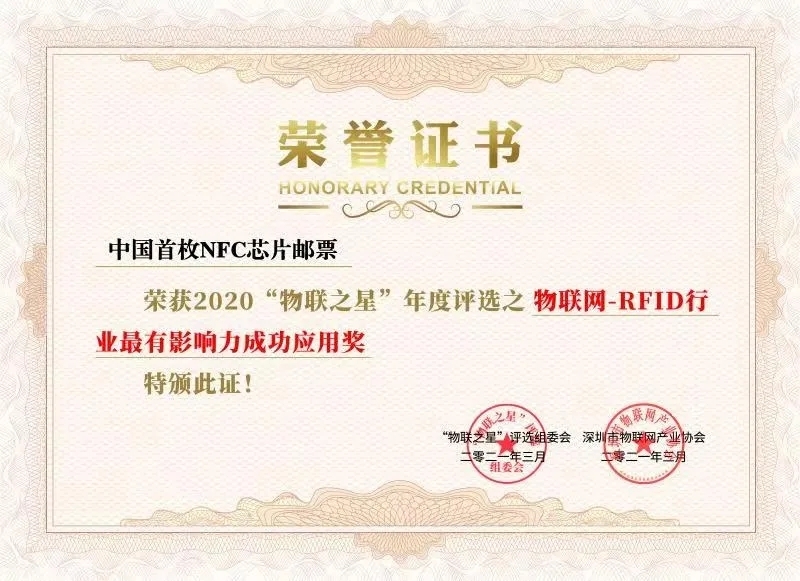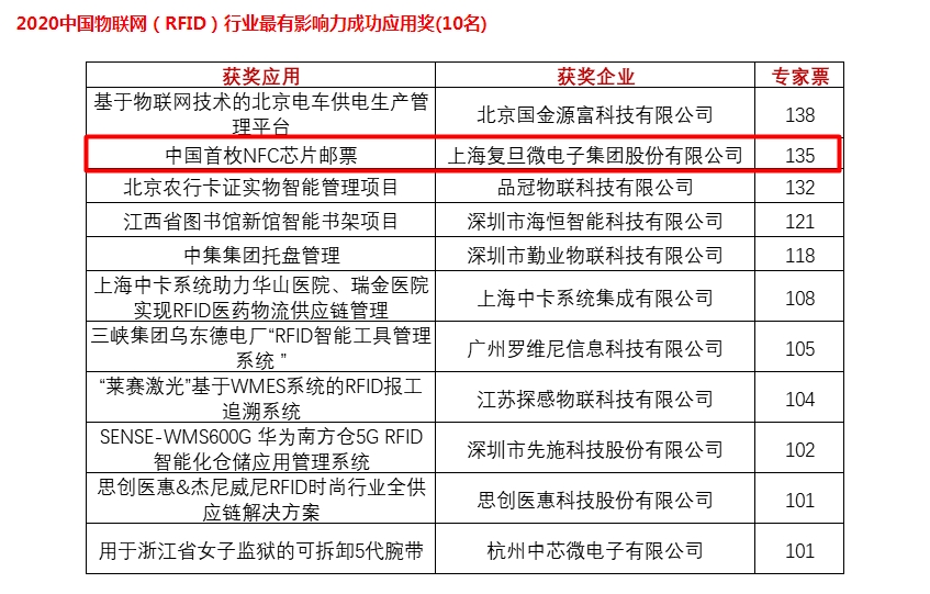 由上海復(fù)旦微電子集團(tuán)股份有限公司自主研發(fā)的NFC芯片復(fù)合搭載于中國(guó)首枚NFC芯片,這一應(yīng)用獲得專家評(píng)委高票認(rèn)可,榮膺“2020‘物聯(lián)之星年度評(píng)選之物聯(lián)網(wǎng)-RFID行業(yè)最有影響力成功應(yīng)用獎(jiǎng)。
